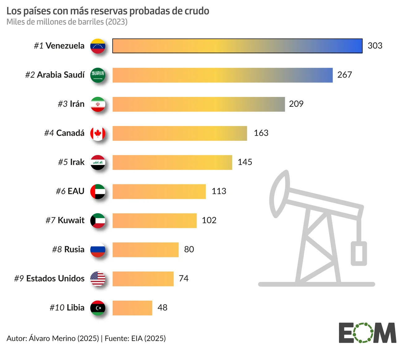 • Estados Unidos: alrededor de 70 mil millones de barriles, aunque su fortaleza principal radica en la producción mediante técnicas como el fracking.